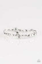 Infused with hints of silver, dainty white crystal-like beads are threaded along stretchy bands, creating whimsical layers across the wrist.