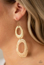 Brushed in a high-sheen finish, textured asymmetrical hoops link into an abstract lure for a casual look. Earring attaches to a standard fishhook fitting.