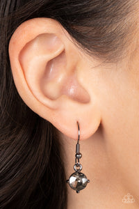 A smoldering collection of smoky, iridescent, and metallic gems of various cuts coalesces into a lavish frame at the bottom of a classic gunmetal chain, resulting in a glamorous finish below the collar.