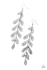 Hammered in a rustic finish, antiqued silver frames delicately link into a leafy lure for a seasonal inspired style. Earring attaches to a standard fishhook fitting.