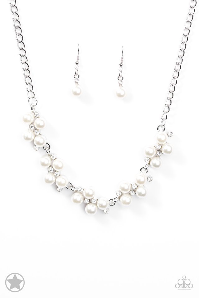 Dainty clusters of shimmery white pearls are dusted with sparkling rhinestones, creating a romantic, timeless design. Features an adjustable clasp closure.