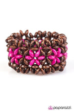 Earthy wooden accents are threaded along elastic stretchy bands, creating an ornate bracelet. Tinted in a vivacious finish, pink wooden beads gather into summery floral accents for a colorful finish.