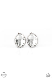 Featuring a faceted finish, an oversized marquise-shaped gem is nestled in a sleek silver frame for an undeniably statement-making look. Earring attaches to a standard clip-on fitting.