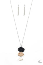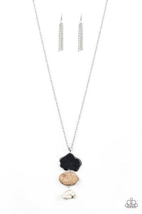 As if chipped off a cliff, pieces of black, brown, and white rock link at the bottom of a lengthened silver chain for an earthy look. As the stone elements in this piece are natural, some color variation is normal. Features an adjustable clasp closure.
