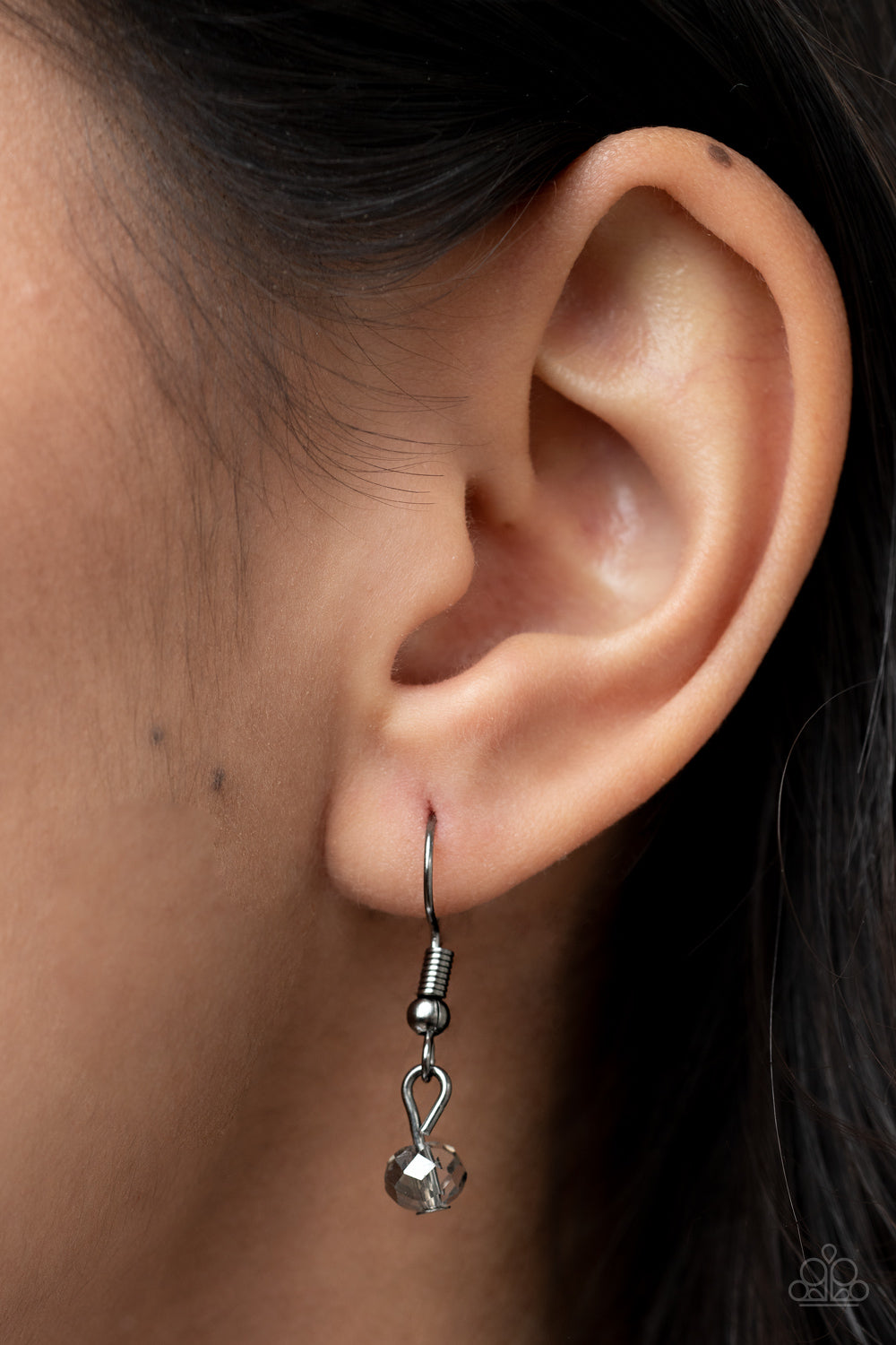 Sections of iridescent and smoky crystal-like beads embellish strands of dainty gunmetal beaded chains, resulting in prismatic layers across the chest. Features an adjustable clasp closure.