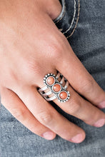 Infused with glassy orange beads, a studded silver frame is pressed into the center of a layered silver band for a seasonal look. Features a stretchy band for a flexible fit.