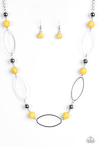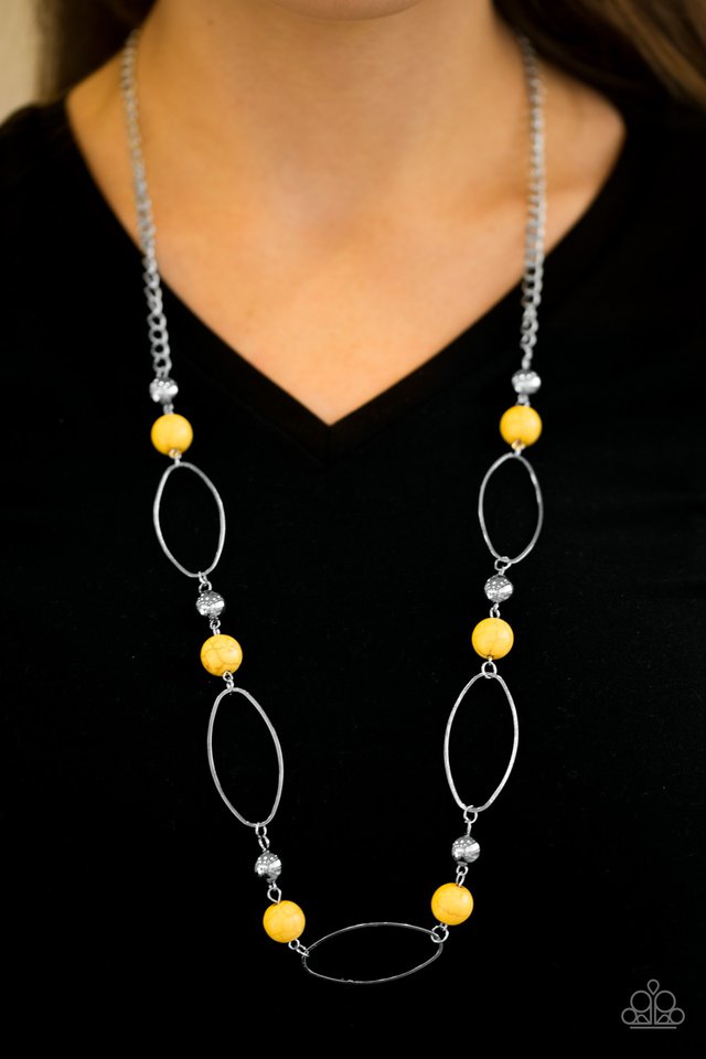 Sunny yellow stones and classic silver beads join airy silver hoops along a silver chain for a seasonal look. Features an adjustable clasp closure.