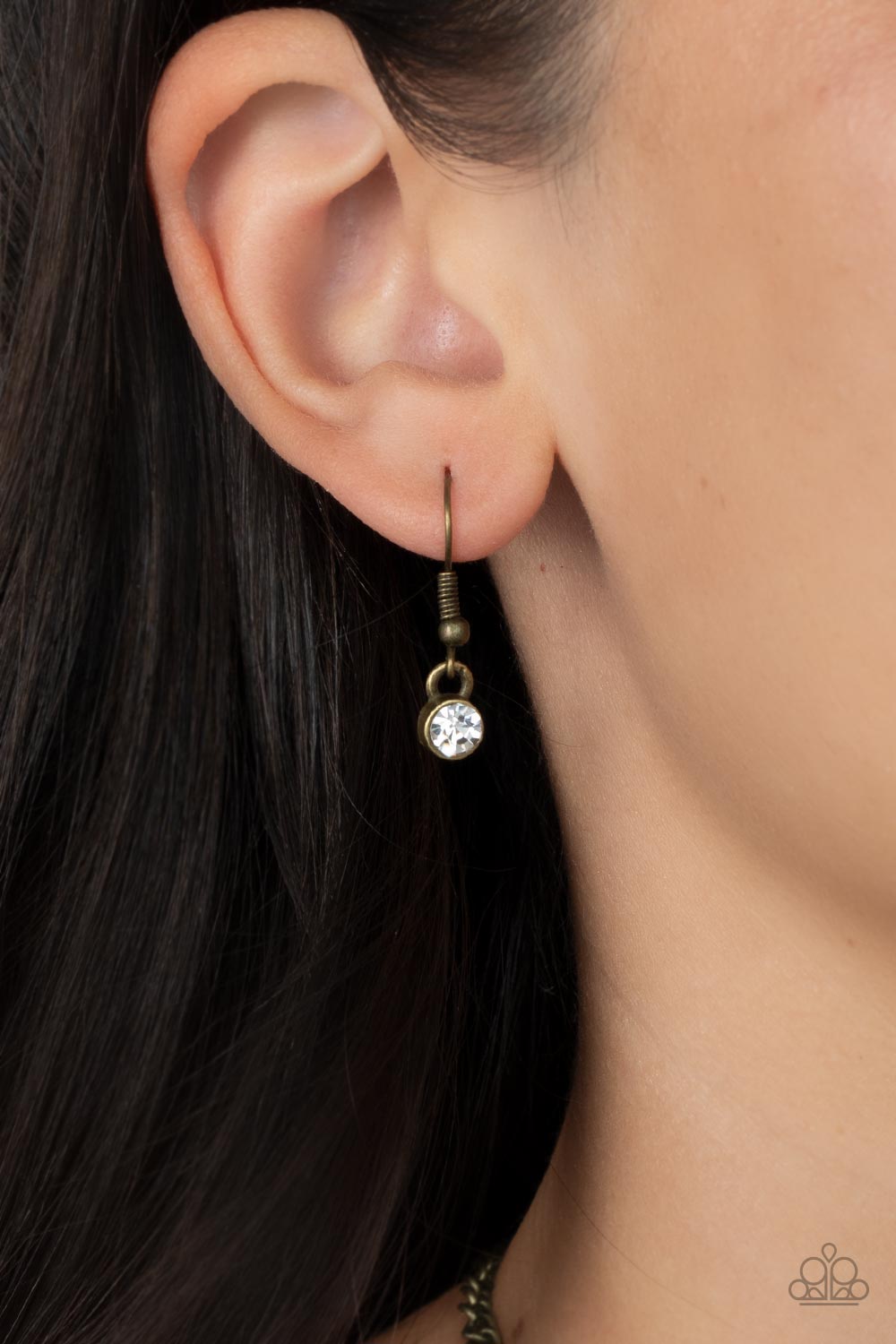 Blinding white rhinestones are encrusted across the front of an oversized brass star frame at the bottom of a lengthened brass chain, resulting in a stellar sparkle. Features an adjustable clasp closure.