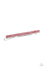 Two rows of glittery pink rhinestones are encrusted across the front of a silver frame, creating a glamorous display. Features a clamp barrette closure.