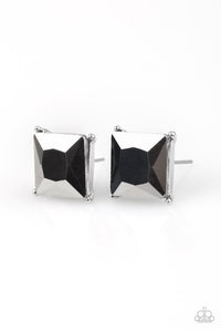 Featuring a timeless princess style cut, a dramatic hematite gem is pressed into a sleek silver frame for a timeless look. Earring attaches to a standard post fitting.