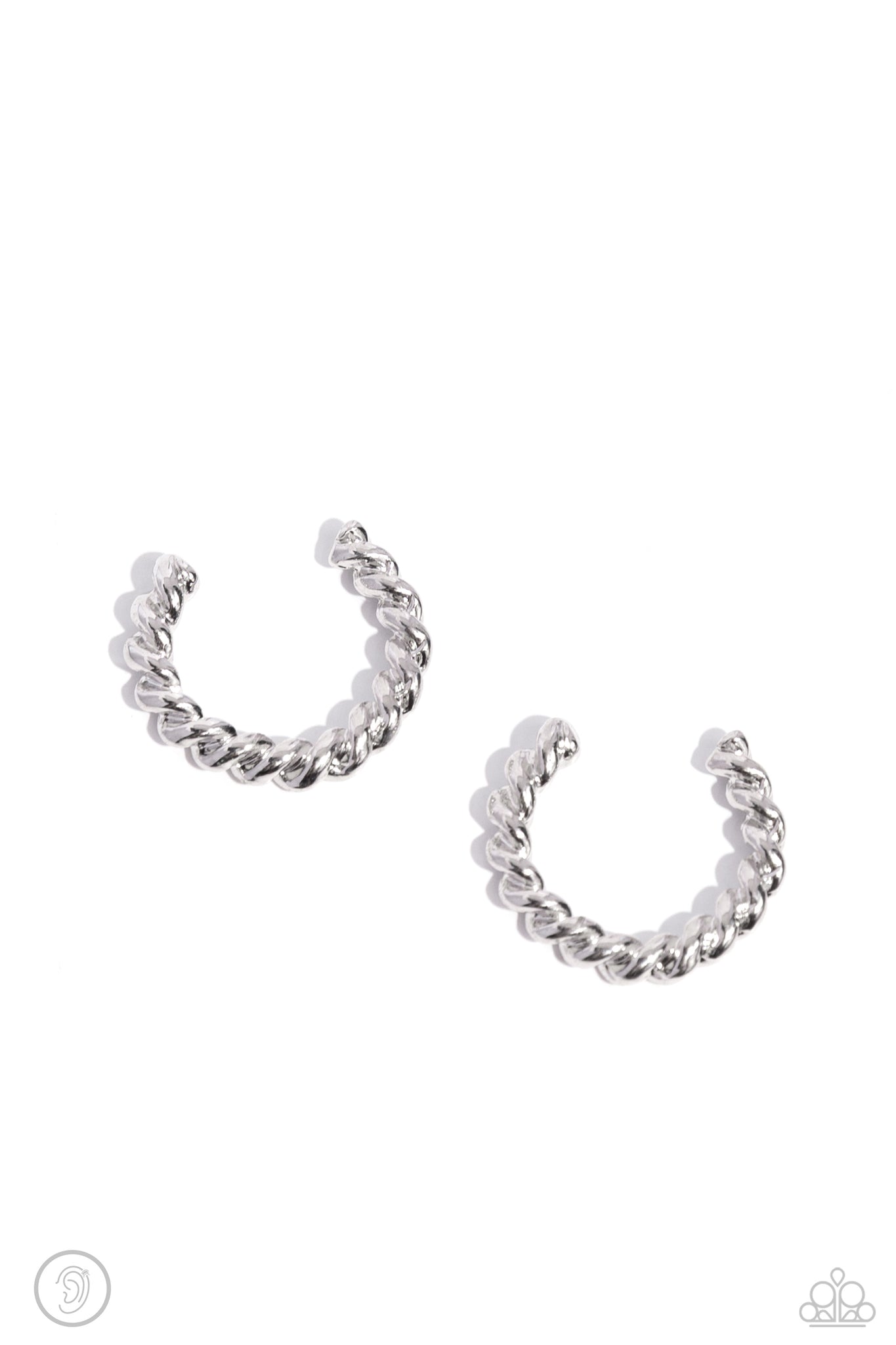 Twisted Travel - Silver Post Earrings - Paparazzi Accessories