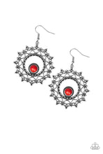 Featuring studded details, frilly heart-shaped filigree spins around a smooth red stone bead, creating a whimsical wreath. Earring attaches to a standard fishhook fitting.