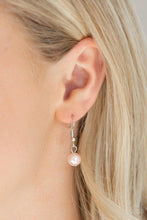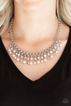 Glittery white rhinestones and classic pink and silver pearls swing from the bottom of interlocking silver chains, creating a bubbly fringe below the collar. Features an adjustable clasp closure.
